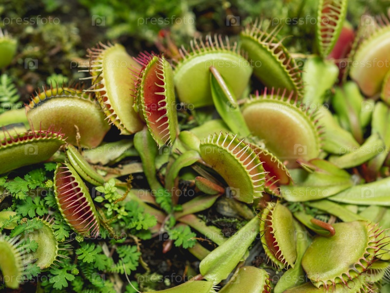 Венерина мухоловка или Dionaea muscipula, крупный план фото плотоядного растения