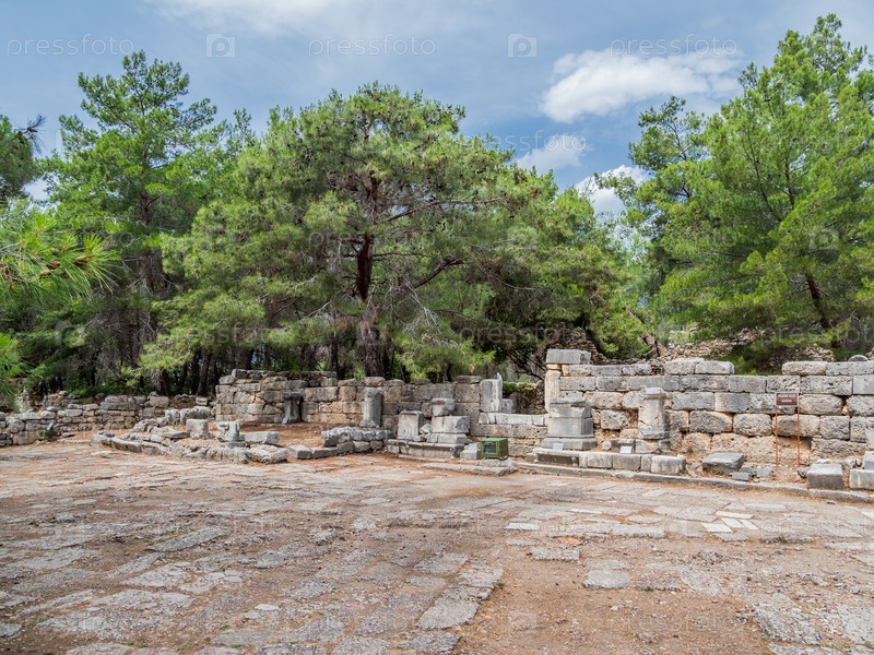Агора, разрушенная рыночная площадь в древнем городе Фаселис. Известная архитектурная достопримечательность Турции