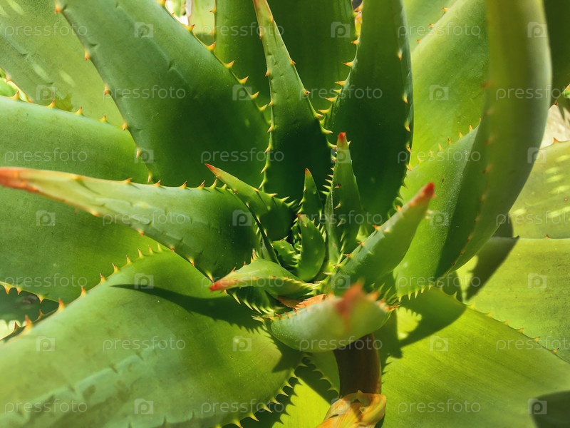 Зеленые листья алоэ с шипами. Естественный фон с колючим растением