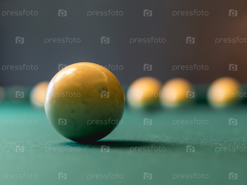 Крупным планом фото бильярдных шаров на зеленом бильярдном столе