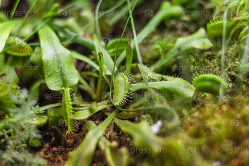 Венерина мухоловка или Dionaea muscipula, крупный план фото плотоядного растения