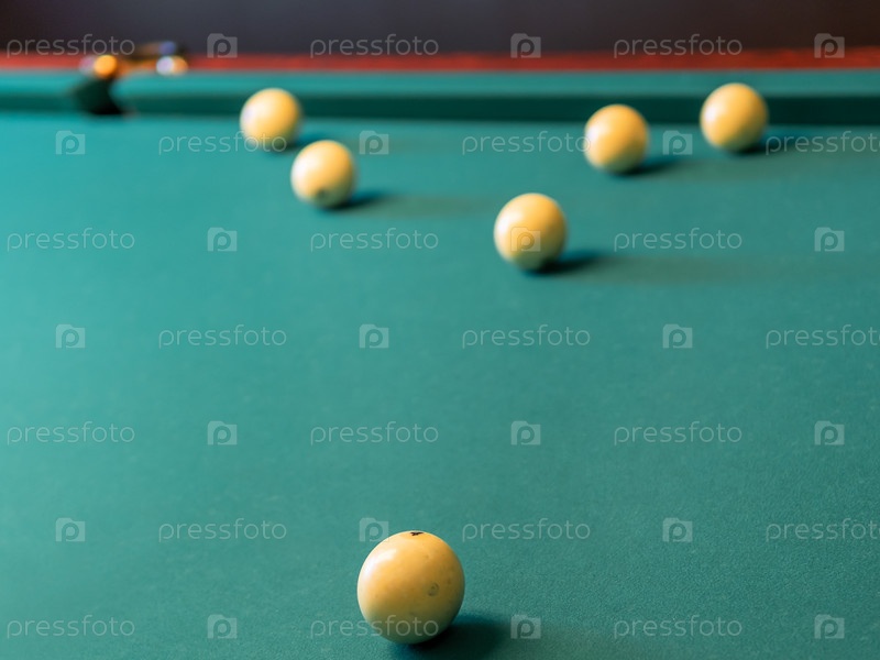 Крупным планом фото бильярдных шаров на зеленом бильярдном столе