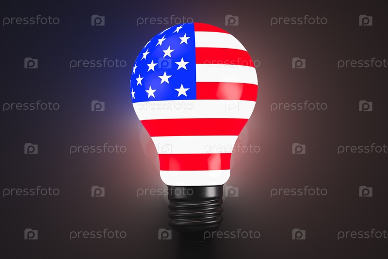 Светящаяся лампочка стилизованная в стиле американского флага. Геополитическая тематика