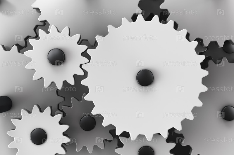 Зубчатый механизм крупным планом. Много взаимодействующих передач