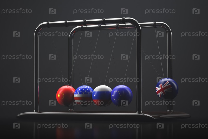 Иллюстрация геополитической темы. маятник Ньютона