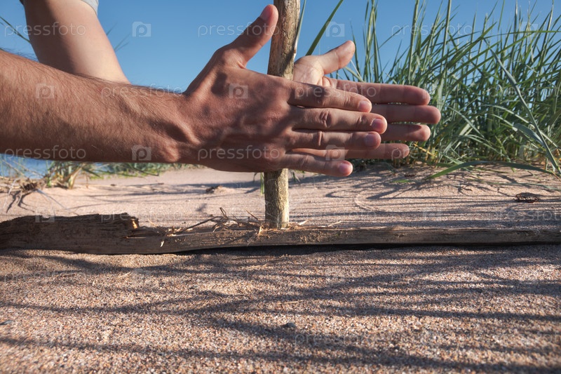 Человек пытается развести огонь подручными средствами. Древний способ разведения огня