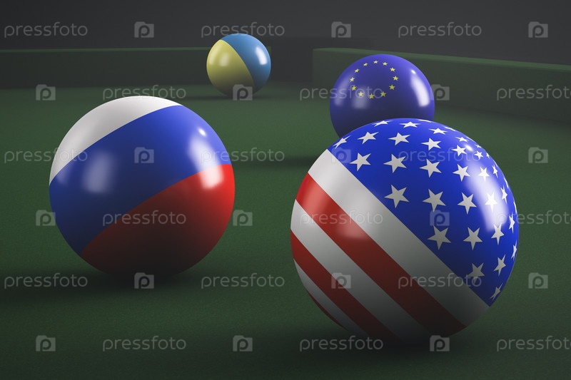 Тема геополитических игр. Бильярдные шары с государственной символикой