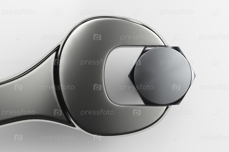 Рожковый ключ с шестигранным болтом. Большой план. Механические темы