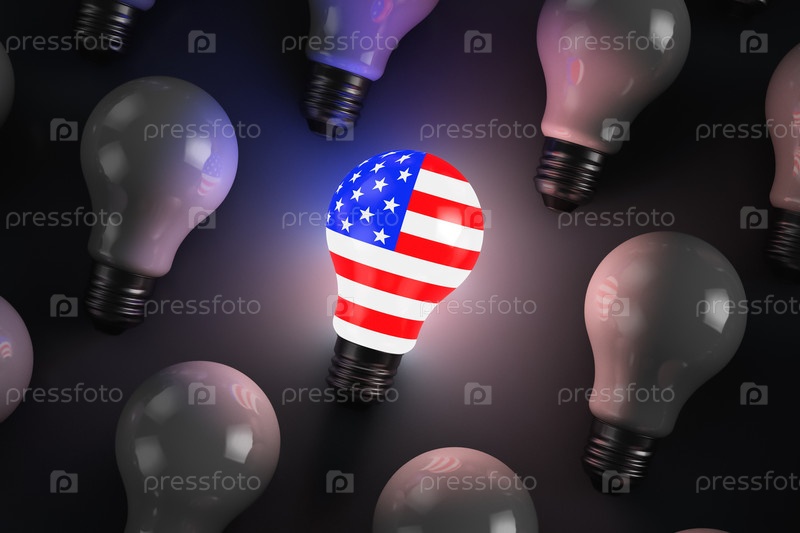 Светящаяся лампочка с символом США в окружении несветящихся лампочек