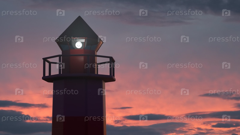 Башня морского навигационного маяка. Закатное небо на заднем плане