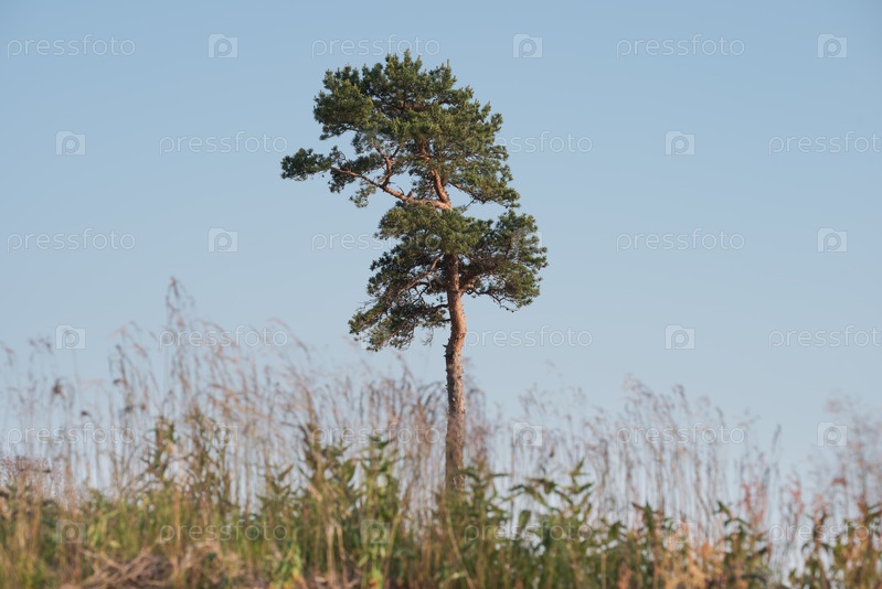 Одинокая сосна в поле. Живописный пейзаж
