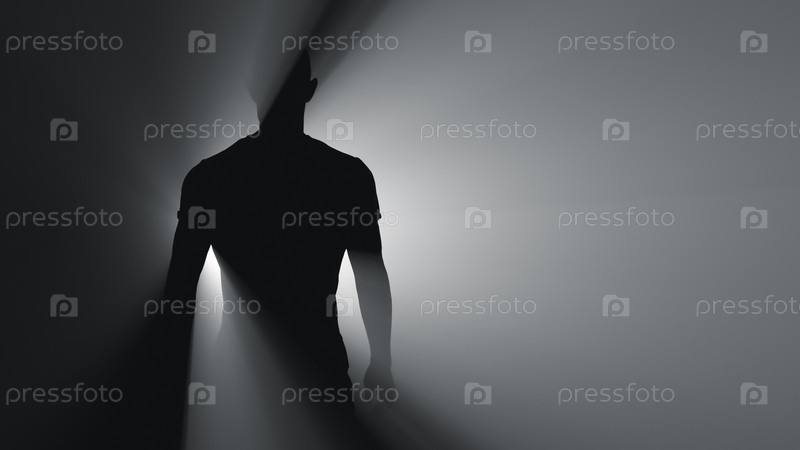 Силуэт мужчины в лучах прожектора. Копировать пространство