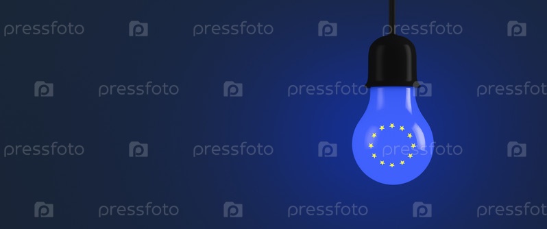 Светящаяся лампочка с символикой Европейского Союза. Политическая, экономическая тематика
