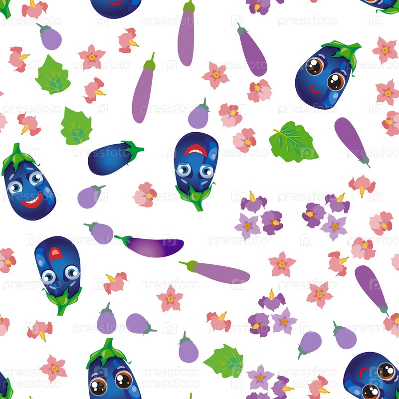 Бесшовный фон овощной баклажан. Смешные милые лица персонажей