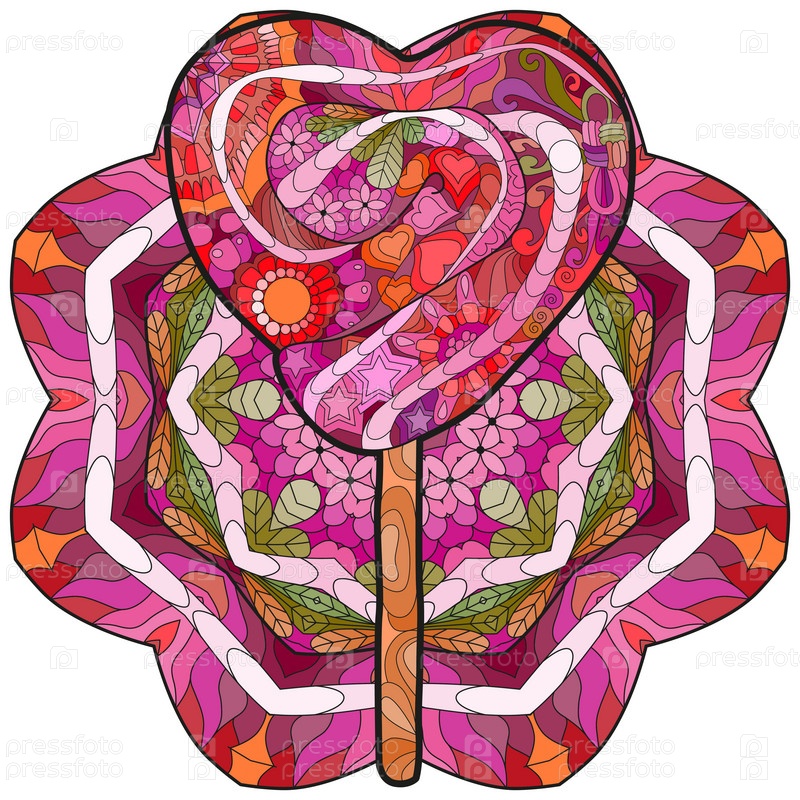 Векторный леденец с абстрактными орнаментами для украшения на узорчатой круглой подложке
