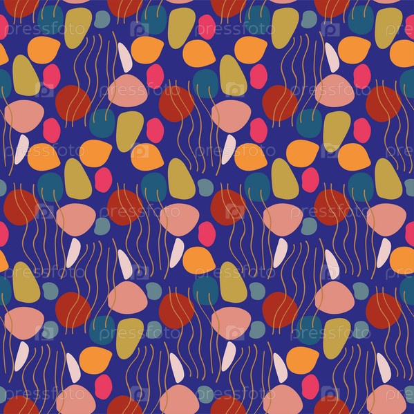Абстрактные модные бесшовные узоры с нарисованными вручную красочными формами на фиолетовом фоне