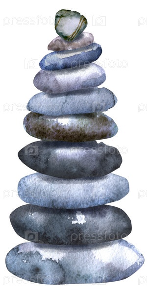 Ручной обращается изолированная красочная акварельная куча камней на белом фоне
