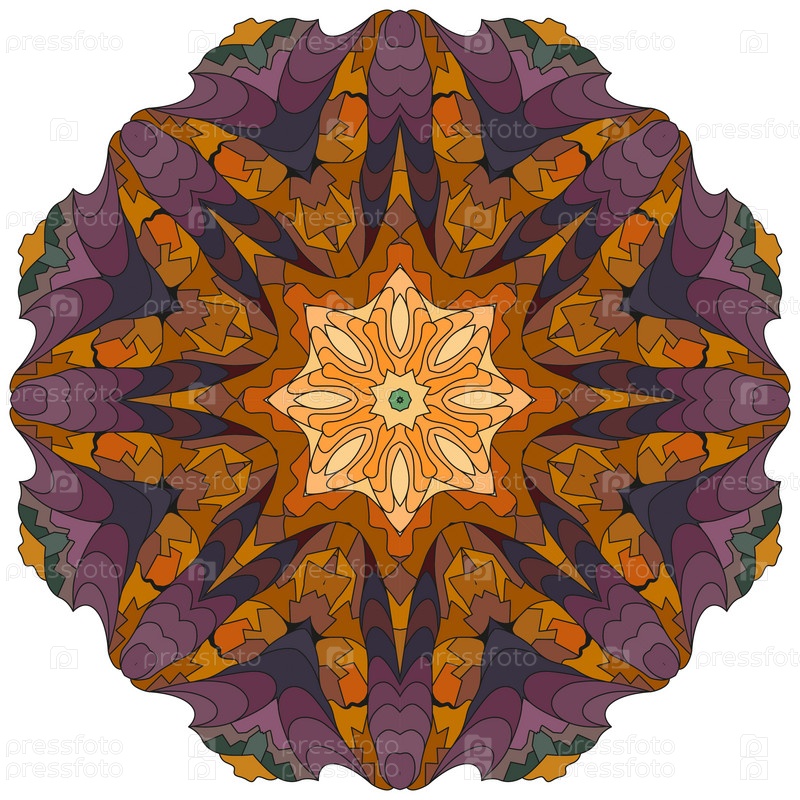 Декоративные круглые украшения. Необычная форма цветка. Восточный вектор, схемы антистрессовой терапии. Переплетение элементов дизайна. Вектор логотипов йоги