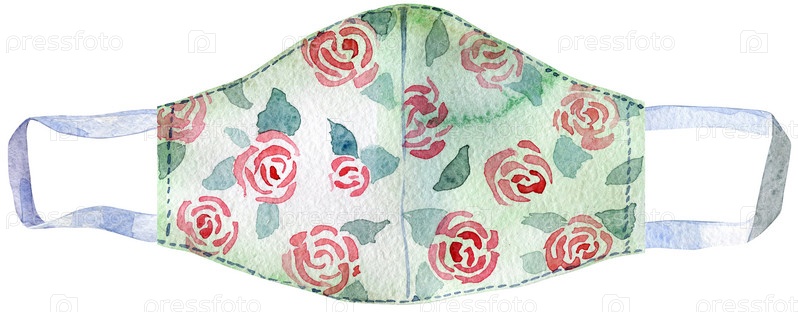 Маска для лица защищает от вирусов акварельный клипарт. Здравоохранение, медицинская маска ручной работы