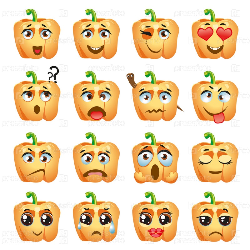 Набор векторных наклеек, смайликов с милым оранжевым перцем