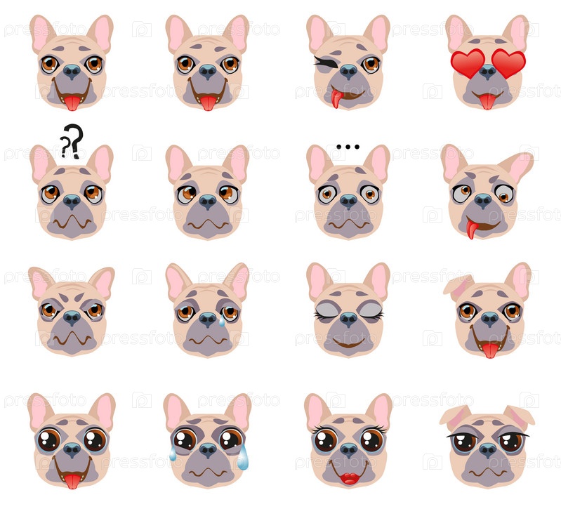 Набор векторных наклеек, смайликов с милой собакой