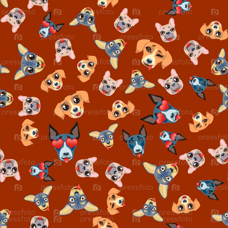 Бесшовный рисунок векторных наклеек, смайликов с милой собакой