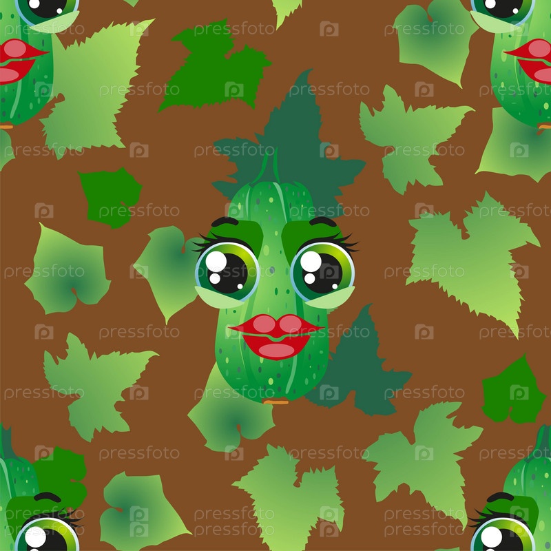 Бесшовные овощные кабачки. Смешные милые лица персонажей