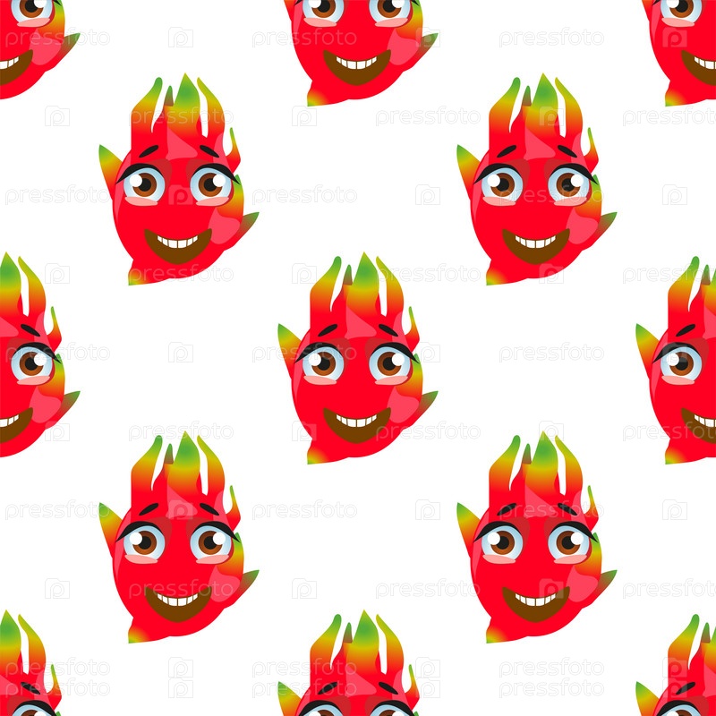 Бесшовный узор из экзотических фруктов питайи. Смешные милые лица персонажей