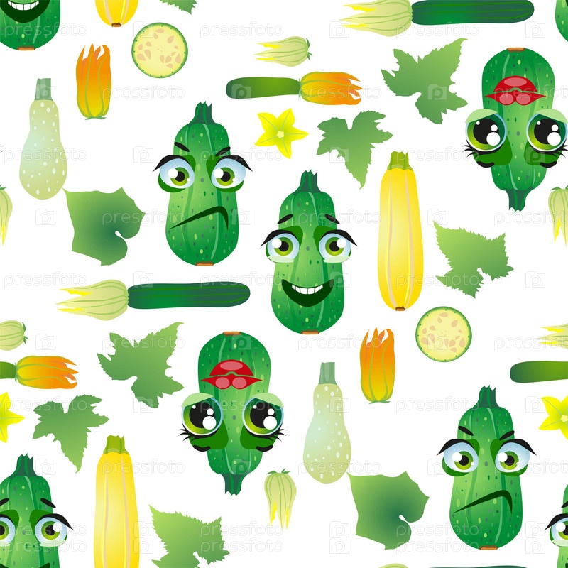 Бесшовные овощные кабачки. Смешные милые лица персонажей