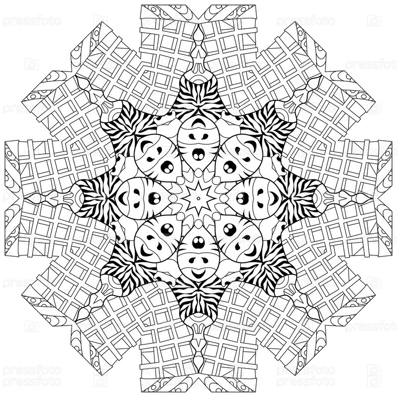 Ручно нарисованная мандала зентагле для покраски страниц