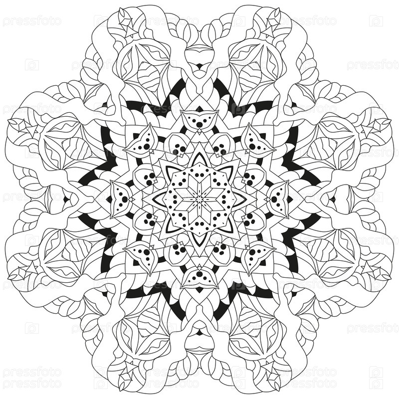Круговой орнамент ручной работы для раскраски страницы