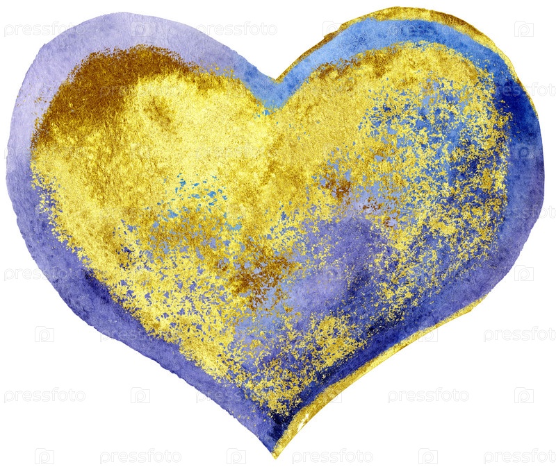 Акварельное текстурированное фиолетовое сердце с золотыми штрихами