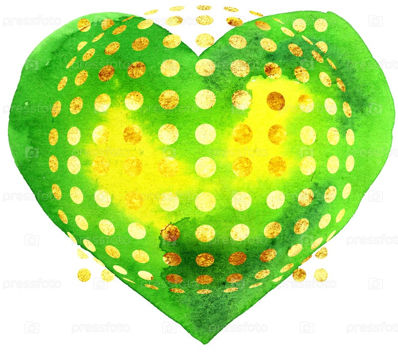Акварель текстурированное зеленое сердце с золотыми штрихами