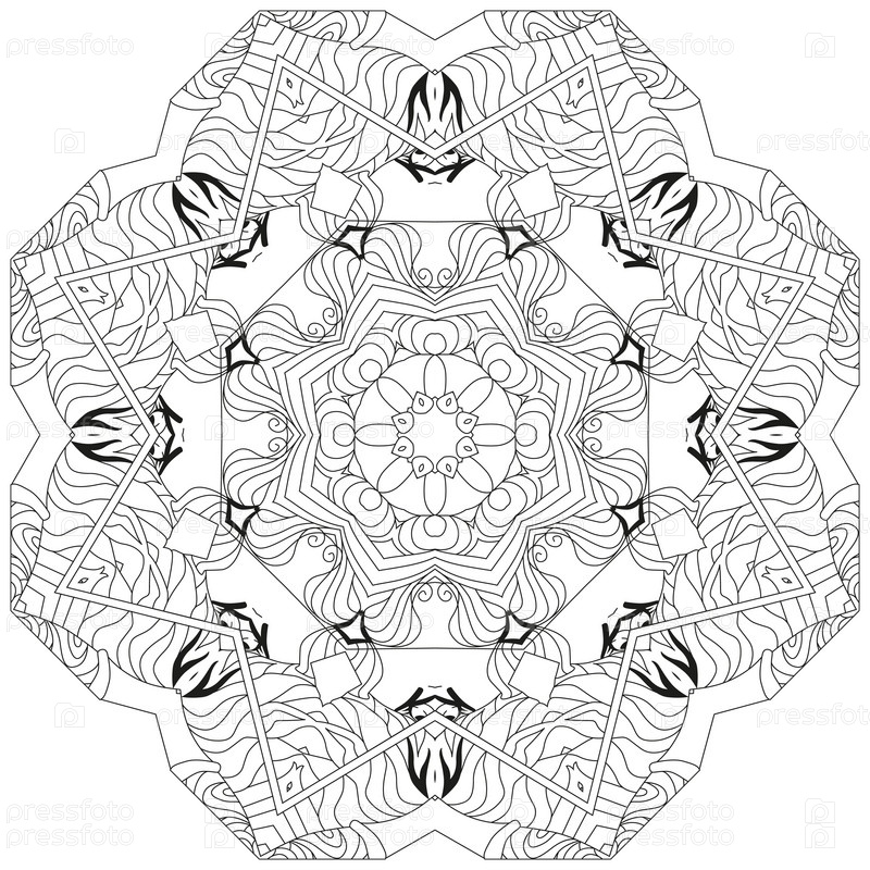 Круговой орнамент ручной работы для раскраски страницы