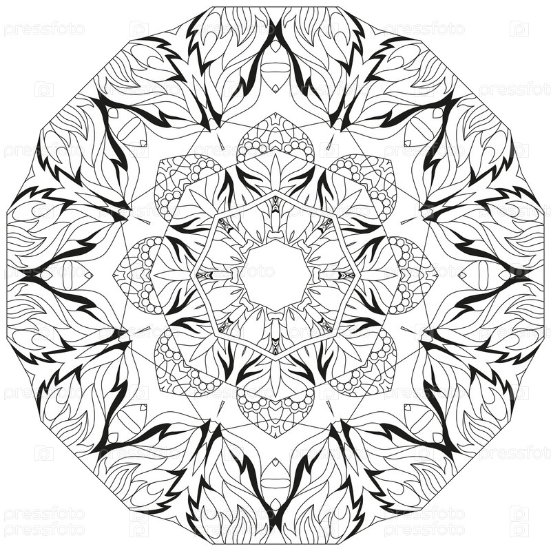 Круговой орнамент ручной работы для раскраски страницы