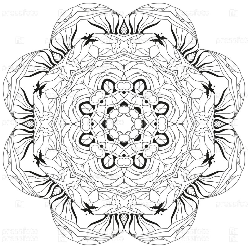 Круговой орнамент ручной работы для раскраски страницы