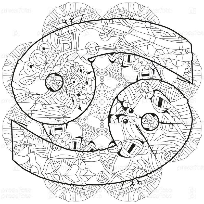 Знак зодиака РАК с мандалой, концепт-арт астрологии. Дизайн татуировки. Для окраски