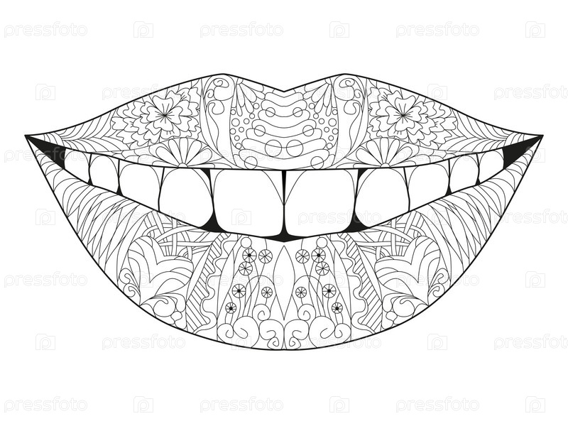 Zentangle стилизованная улыбка для окраски. ручной рисунок векторного кружева