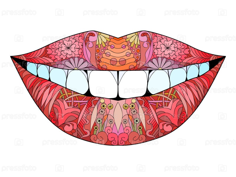 Зентангл стилизованная улыбка. Ручной рисунок вектора кружева