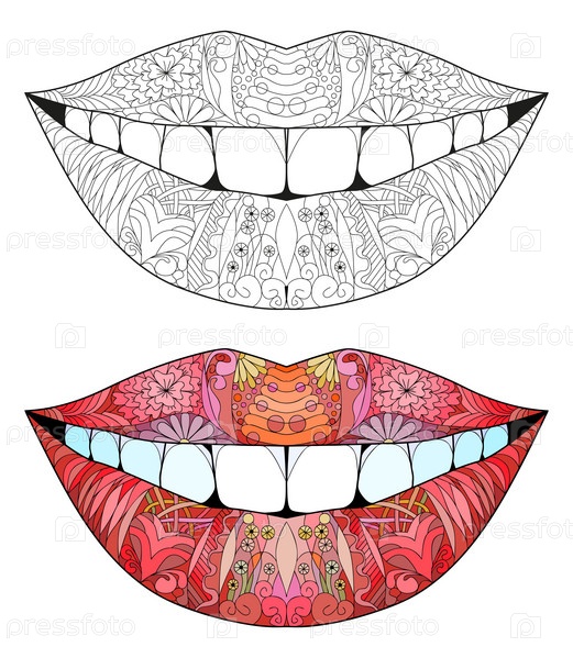 Zentangle стилизованная улыбка для окраски. ручной рисунок векторного кружева
