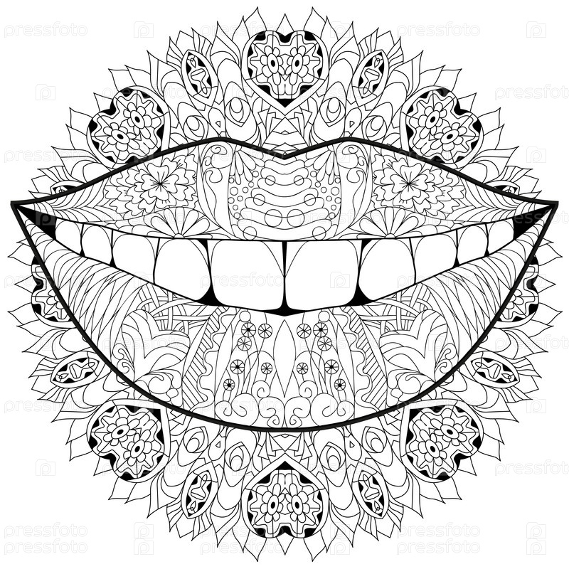 Zentangle стилизованная улыбка на мандале для окраски