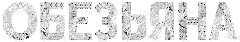 Слово обезьяна на русском языке. векторный объект zentangle для украшения, для окраски