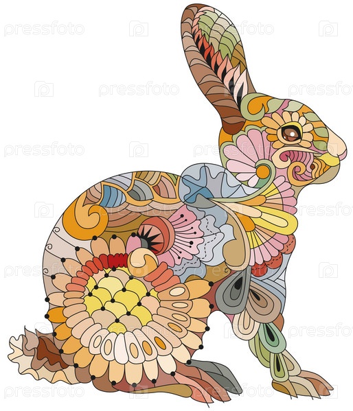 Весенний кролик. Пасхальный фон с творческим милым кроликом. Красочная векторная иллюстрация