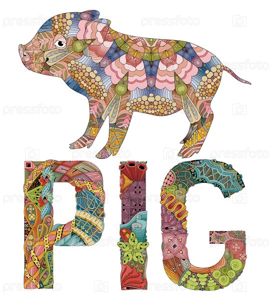 Иллюстрация Zentangle с свиньей. Клуб Дзен или поросенок-каракули. Свинка в стиле зентангл для дизайна футболок, татуировок и других украшений