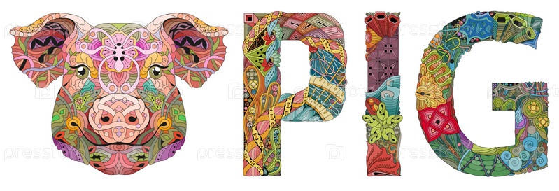 Зентангл стилизованная свинья. Ручная рисованная декоративная векторная иллюстрация