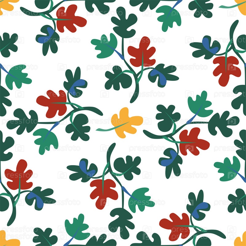 Бесшовный цветочный узор с модными растениями на белом фоне. Векторная иллюстрация. Печать на ткани, бумаге, обоях, дизайн упаковки
