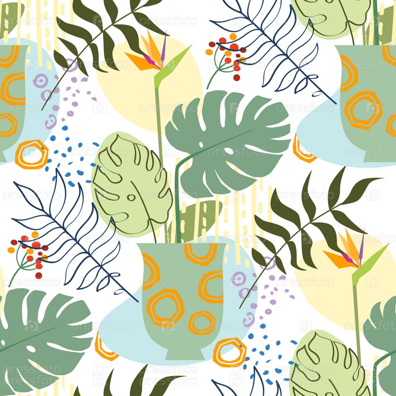 Безшовная абстракция с вазами. Модный коллаж натюрморта с горшком, растением и вазой. Ручной рисунок минималистского набора векторов формы. Иллюстрационный горшок с цветочным изображением для декоративного интерьера