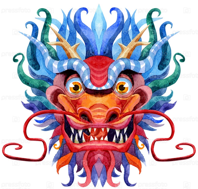 Дракон китайский гороскоп характер акварельные иллюстрации, изолированные на белом фоне