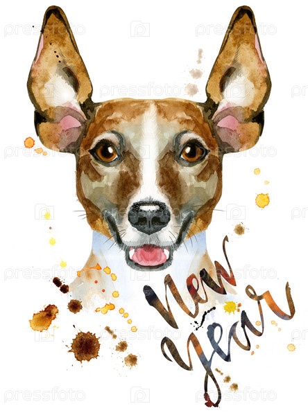 Милая собака. Графика на футболках с собаками. акварель джек рассел терьер иллюстрация с надписью новый год