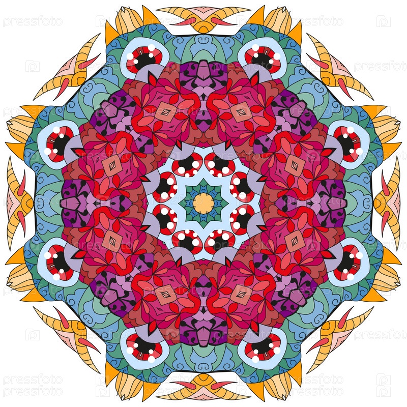 Декоративные круглые украшения. Необычная форма цветка. Восточный вектор, схемы антистрессовой терапии. Переплетение элементов дизайна. Вектор логотипов йоги